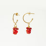Manola earrings feature a beautiful gold-plated semi-hoop holding a stunning small red bouquet made of round zircon stones hanging over a simple and delicate red flower. Handmade in Colombia, they are halfway between Latin American tradition and modernity. Slightly hanging, this stunning pair will accentuate your face and add a touch of originality to your look.