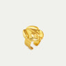 The Muuch Frog Adjustable Ring features a flexible band and a raised frog design, plated with 24-karat gold for brilliance and durability. The frog, with its large protective eyes, symbolizes luck and healing.